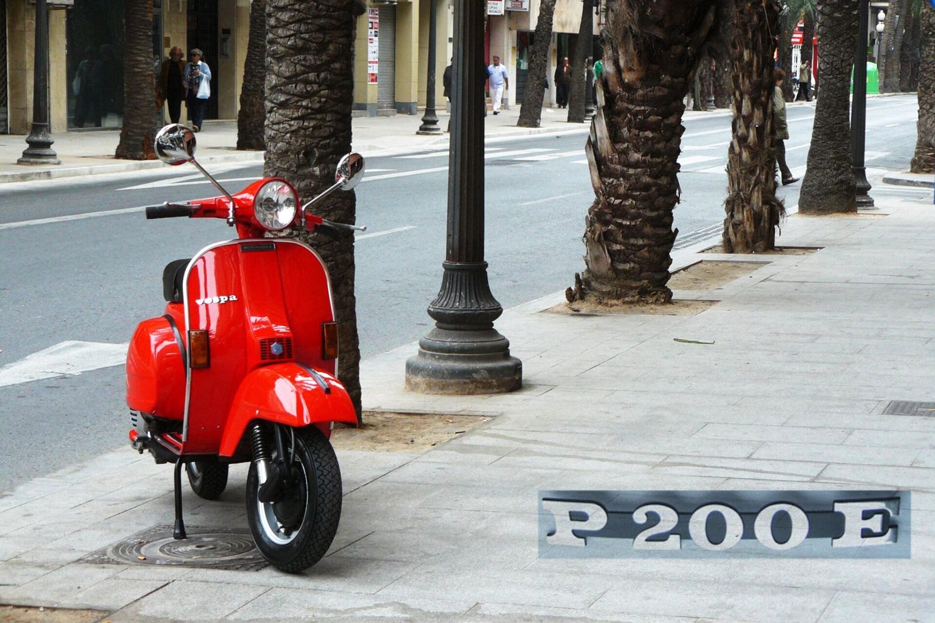 La Vespa P200E nació en 1977 como respuesta a esa necesidad: una Vespa grande, con un motor de 200 cc, que pudiera moverse con soltura por ciudad y carretera.