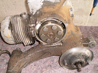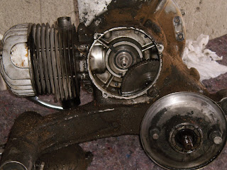 Hace algún tiempo que no publico nada nuevo por aquí, ya sabéis que he estado con una vespa súper (y si no lo sabéis mirad los enlaces del blog, bonicos); pero ahora tengo algo entre manos, y es la restauración del motor de Imperiala, bueno, no el original que montaba, ese aún lo lleva puesto y es con el que actualmente está rodando; se trata de un motor de 125S de la misma época que el suyo, pero ya con 4 marchas, que ya me llevó a Castellón (en la Vespaniada) pero que le toca ya un repasillo, es algo mejor que el de 3 marchas, pero no mucho más... De momento tenemos fotos del desmontaje, aquí van: