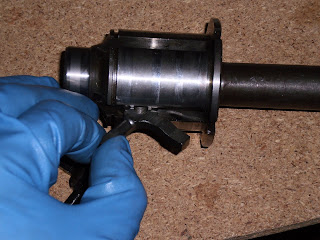 Ahora colocamos el empujador en su alojamiento, si se cae, lo podemos dejar en su sitio con un poco de grasa...