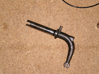 Una foto que muestra la pestaña del selector que empujará o tirará del eje que arrastra la cruceta para engranar una marcha u otra...