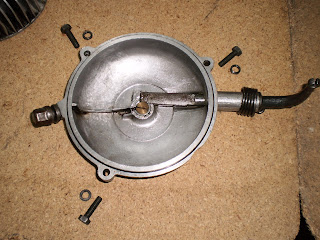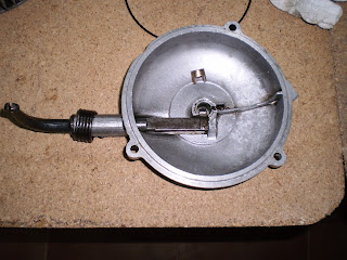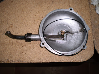 Lo primero que haremos será montar la tapa del embrague, para ir abriendo boca. Creo que no expliqué cómo se desmonta , pero básicamente consiste es quitar el muelle que hace que la palanca vaya hacia atrás, una vez liberado sacamos la palanca y salen todas las piezas, presentamos las piezas a montar, se han sustituido las gomas, la de cierre de la tapa con el cárter y la de la palanca...