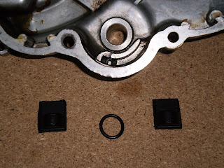 Empezamos colocando la goma en la ranura que para tal efecto tiene el eje de la palanca del embrague, esto evitará que se salga el aceite por ahí y se pegue la suciedad en el motor, aunque sinceramente, creo que eso es más bien cuestión de tiempo...
