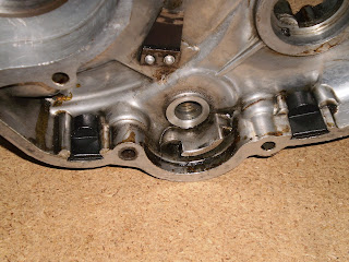 Sólo nos falta la junta del eje de arranque de la palanca de arranque (valga la redundancia), en este caso no se coloca en el eje (una ranura lo debilitaría) sino que se monta en el hueco, aquí presentada...