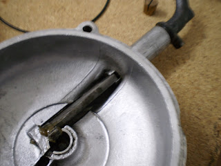 Esta pieza se aloja en la tapa, embadurnamos con un poco de grasa sin pasarse y la colocamos en su sitio para comprobar cómo encaja con la pieza que moverá el empujador, también con grasa, el montaje hay que realizarco con el muelle puesto ya en su sitio, y lo colocaremos con la ayuda de un destornillador...