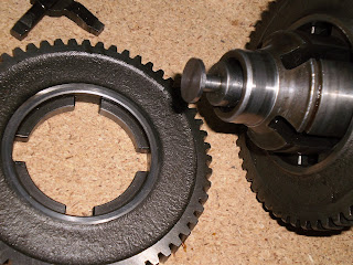 Aquí se puede apreciar la disposición de las ranuras de los engranajes de la 1º y 2ª velocidad...