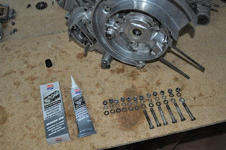 Ya estamos más cerca de salir a petardear por ahí con Imeperiala, esta tarde he cerrado el motor, que lo tenía atascado en la cochera. Vamos a lo que vamos; como siempre las piezas presentadas, tornillería y silicona especial para sellar cárteres...