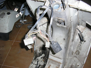 También quitaremos los contactos de los intermitentes, primero desconectaremos la instalación eléctrica (previa anotación de colores) y sacaremos del chasis, en este caso es aún más sencillo pues no hay tornillos, están sujetos con unas pestañas.