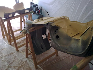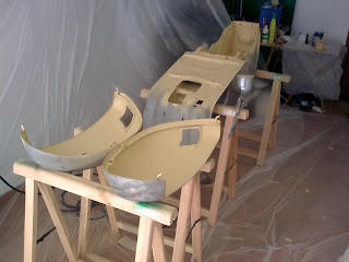 Ya podemos ver el trabajo terminado, los cófanos por la parte exterior y el chasis con la imprimación totalmente aplicada, ahora habrá que lijar y enmasillar para igualar la superficie y dejarla preparada para recibir la pintura.