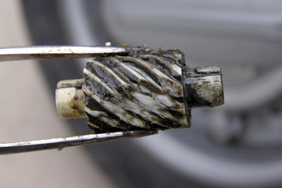 Primero pensé que se había jodido la sirga del velocímetro..., pero al desmontarla para cambiarla, resulta que estaba bien y siguiendo con la búsqueda me encontré con esto;