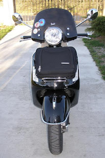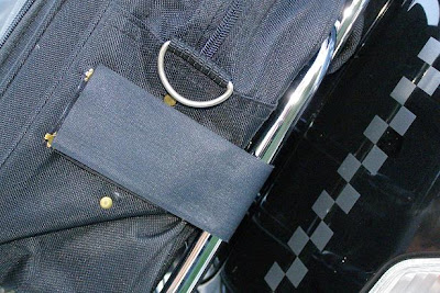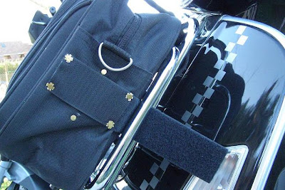 delantero, y un amiguete que trabaja el cuero, me hizo unos anclajes a medida que van con velcro..., así quito y pongo la maleta con tres velcros en un momento y no da pereza llevarla a ningún sitio...