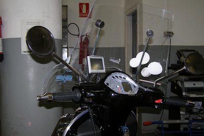 Aprovechando que la 4ª quedaba un poco lejos..., 🙂 🙂 , le monté a la GTS el TomTom (modelo ONE, baratito...) para poder llegar a la puerta de Machado, y así ver la velocidad máxima exacta de nuestras motossssssss, je, jeeeeeeee...