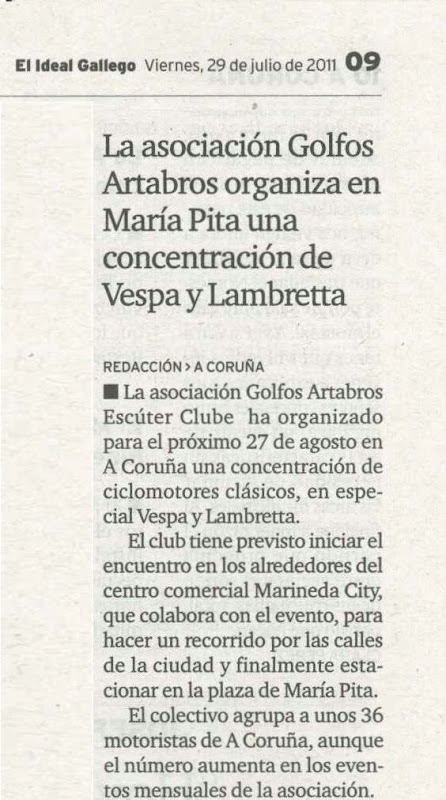 El próximo 27 de Agosto celebraremos nuestra 3ª Golfo-Escuterada en A Coruña.