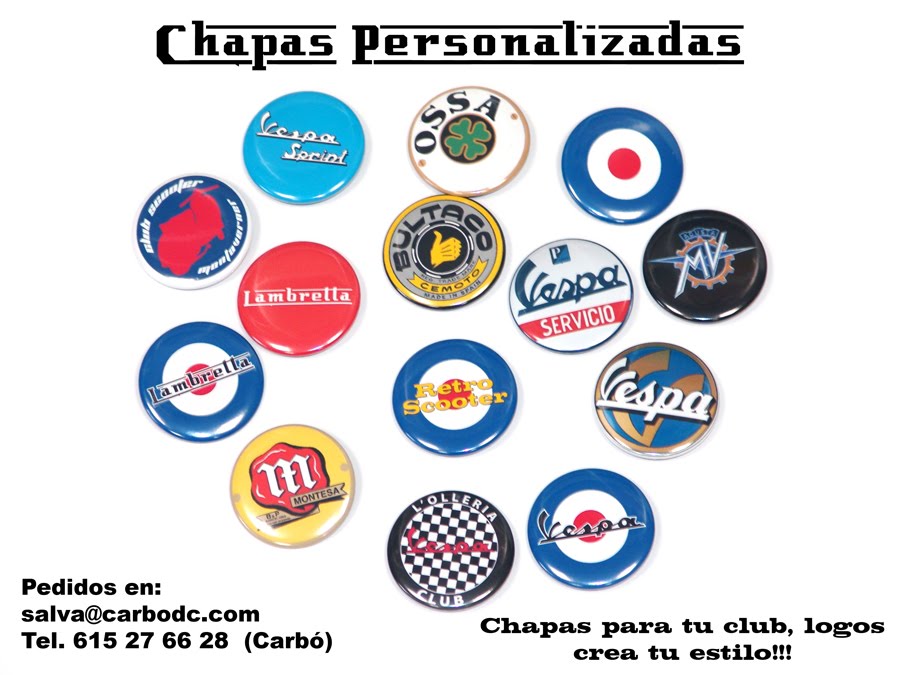 Podeis encargar vuestras CHAPAS preferidas o para vuestro Club Scooter.