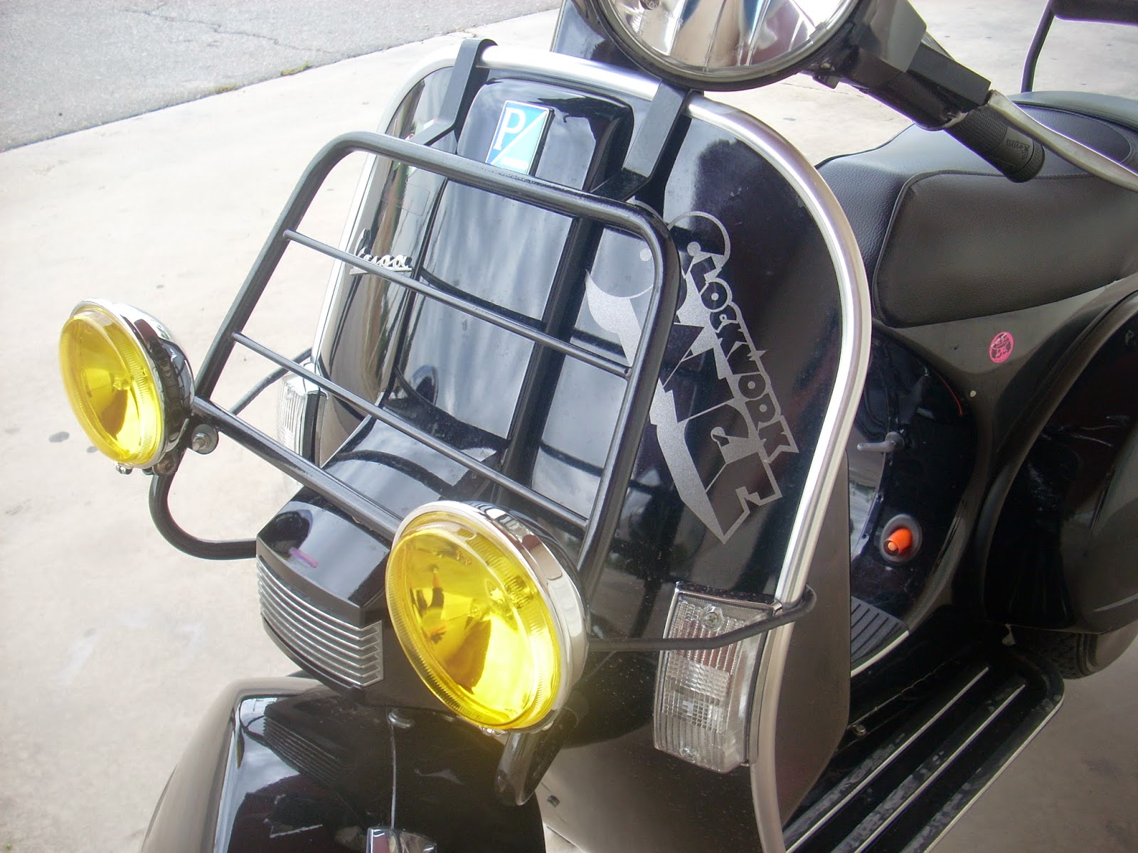Bueno,pues al final no le voy a poner el cristal del faro amarillo ni con vinilo,(que dicho sea de paso lo probé y no me convenció el vinilo,quedaba cutre salchichero) ya que quedaba demasiado cargada de color,porque puse los dos faros auxiliares al final en la parrilla delantera en lugar de uno sólo(que le quité la pinza para montar los faros).