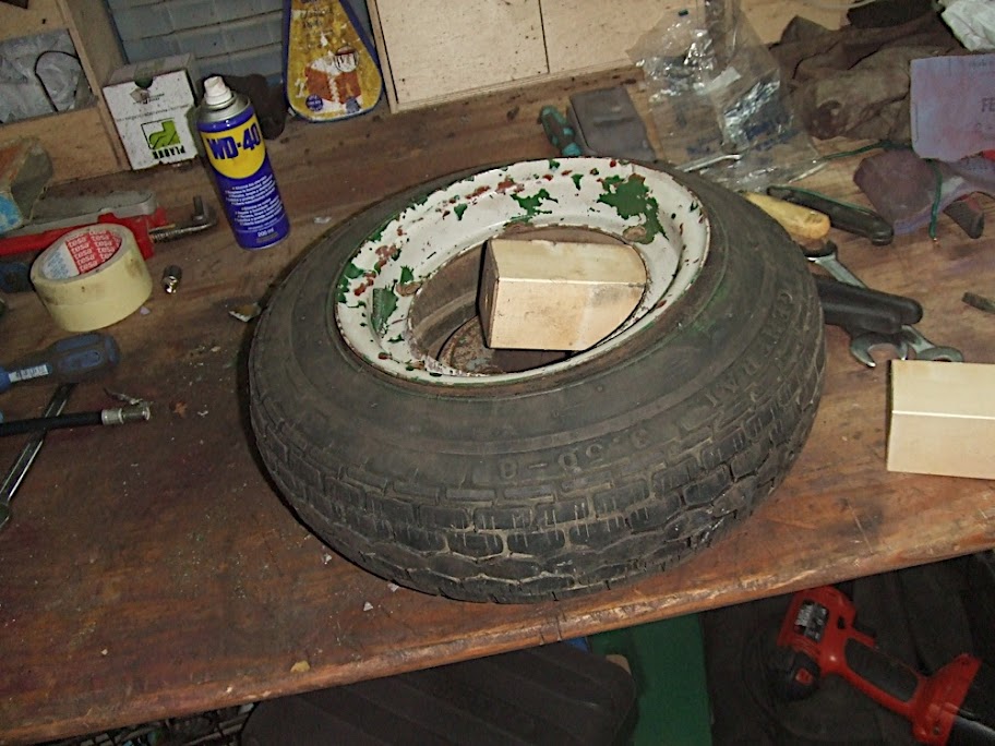 Hola, esta tarde he estado desmontando las últimas piezas de mi 125s. Pero cuando he intentado desmontar las llantas para lijarlas y pintarlas, con una de ellas no hemos podido despegarla..... La primera sin problemas, quitamos los tornillos un poco de martillo para despegar la llanta y bien.... ha salido. Pero la otra, como pongo en la foto no hay manera de despegar la llanta de la cubierta. Le doy aire como se ve en la foto y nada... la llanta despega pero la goma no despega...