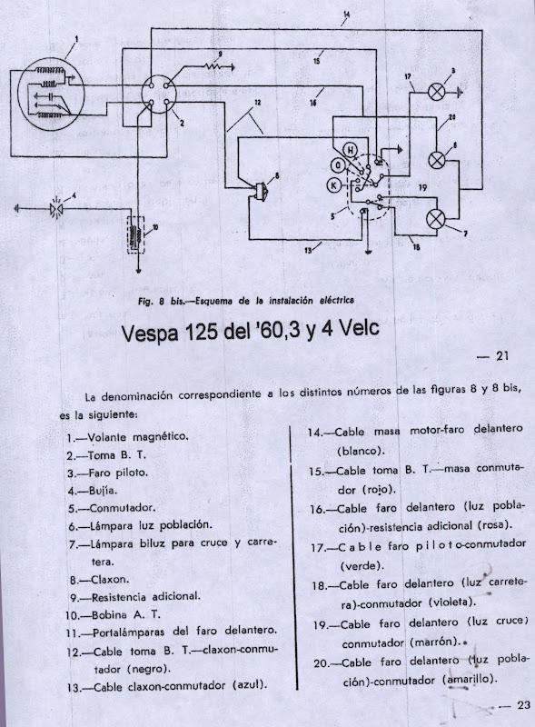 Mi vespa es una 125s de 4 velocidades y viendo el esquema pone que hay cuatro elementos a los que tengo que poner los cables aparte de la llave del manillar ...
