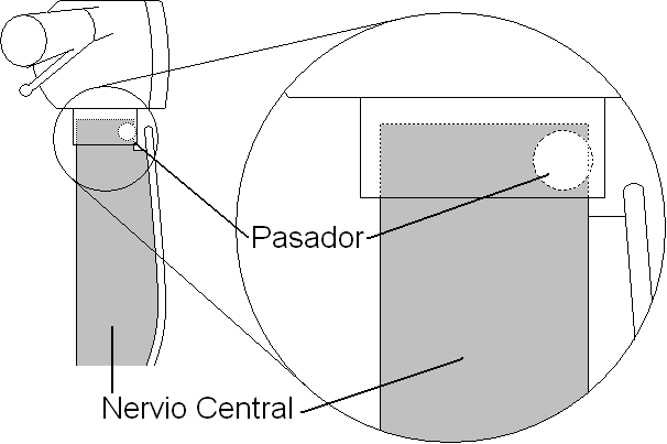 Hola, como alguno ya sabéis, hace tiempo conseguí una 125N de manillar de tubo a la que se lo habían cambiado por otro carenado. Lógicamente lo atractivo es contar con un manillar de tubo y al final lo conseguí pero, obviamente, no el original. El manillar que tenía puesto la moto tiene un tornillo que hace las veces de pasador por la parte delantera del eje de la moto, tal y como se aprecia en la figura.