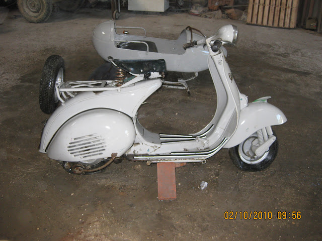 Mi nombre es Damián y me gustaría presentaros a mi Vespa, es una 125 N del 58 con sidecar.Después de muchos años olvidada ha llegado el momento de volver a disfrutarla, espero vuestra ayuda en las dudas que vayan saliendo.