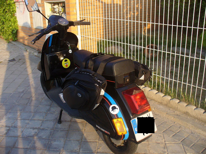 Esas alforjas son de un amigo de Benavente que me hizo un encargo y para enseñárselas le hice una foto con la Vespa para que viera lo bien que quedaba :-).